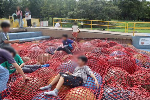 大きな滑り台やアスレチック、ボールトランポリンなどたくさん遊具があり子どもたちは大興奮でした。