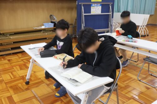 職員の心配はどこ吹く風。みんな真剣な表情で「最高学年になるから…」「中学生になるから…」と目標や頑張りたいことを次々に考えていきます。