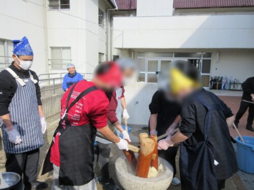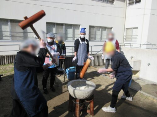 令和7年12月27日に、毎年恒例のもちつき大会がありました。 気温は低かったですが、晴天でもちつき日和でした!