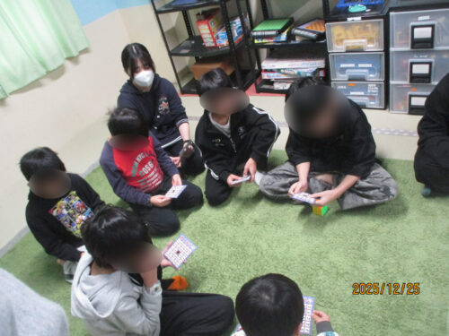 まずはみんなでビンゴ大会。ビンゴになった子から順に、ぬいぐるみやおもちゃをもらい、みんな嬉しそうにしていました!