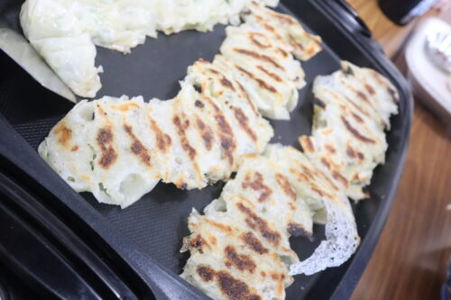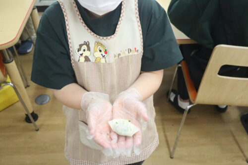 作った餃子の中から、こどもたちが選んだ“いちばん上手にできた餃子”を先生に食べてもらうと、こどもたちは、とても嬉しそうな表情でした。自分の作った餃子を紹介したり、「おいしい?」と聞いていました。