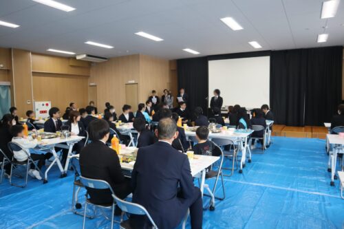今年度のお祝い会では、初の試みとして、退園生をお招きして退園生講演会を行いました。また今年はプレイルームで食事会を行いました。生活職員以外の職員も参加することができ、子どもと職員の交流もより深まりました。